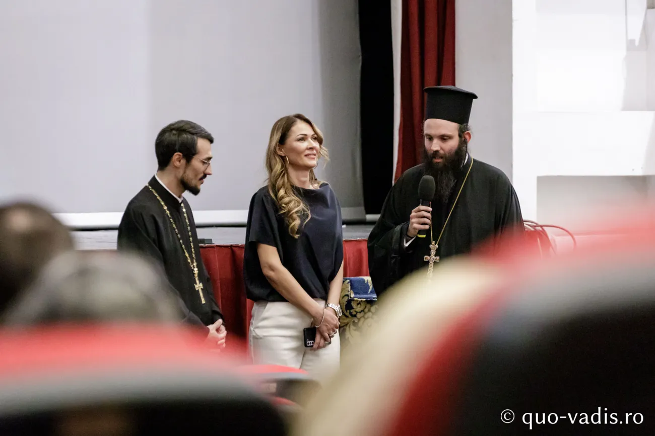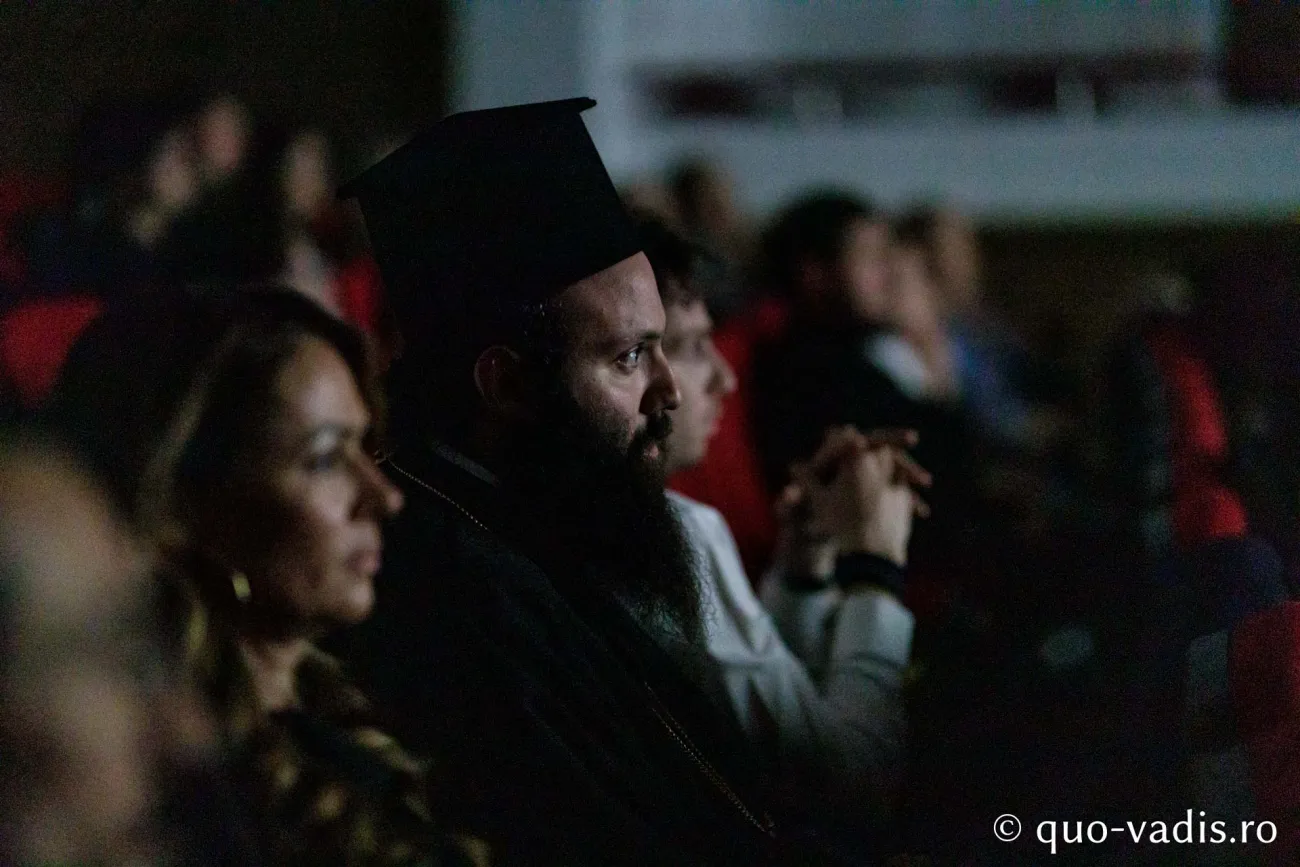 Seara s-a încheiat cu un nou film, un film prezentat publicului în premieră europeană absolută! După o zi intensă și colorată, proiecția alb-negru a filmului „Nebun pentru Hristos” a uimit și a fascinat în egală măsură! Căci alb și negru nu a însemnat doar o simplă alegere estetică, ci o spovedanie a umbrelor și a luminilor din sufletul omenesc. În alb-negru l-am cunoscut pe părintele John, un călugăr atipic dintr-o mănăstire de pe coasta Texasului. În lumina difuză a ecranului, chipul „nebunului pentru Hristos” modern a devenit o icoană vie a smereniei și a durerii purtate pentru ceilalți. Am trăit filmul. Cu adevărat, regizorul Josh David Jordan a reușit să surprindă ceva rar: frumusețea credinței ortodoxe trăite până la nebunie – o nebunie sfântă, o iubire fără măsură.
