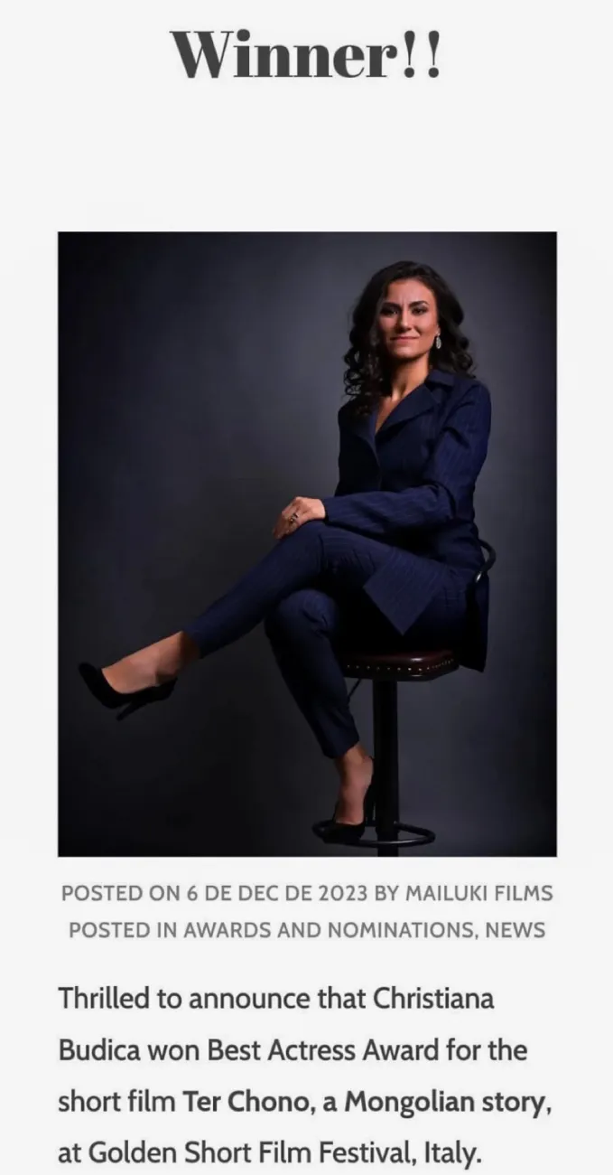- Cel mai bun scurtmetraj la Center Film Festival, Pennsylvania, SUA (2022)